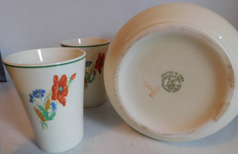 Société Céramique Maestricht melkkan + 3 bekers